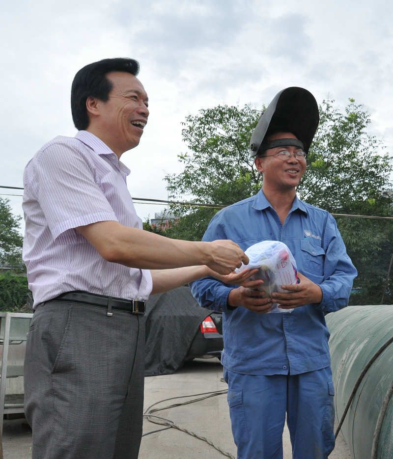 7月12日上午,縣委副書記、縣長孫云耀,縣委副書記孟柏干等縣領導冒著高溫到獨山DN1000自應力管改造現場慰問供水公司一線職工,向供水管道安裝人員表示慰問,并送上防暑慰問品,叮囑大家繼續堅守崗位,科學安排工作,合理調整作業時間,切實做好防暑降溫工作。集團公司董事長倪阿泉等有關領導陪同慰問。