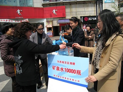 此次活動(dòng)紹興縣水務(wù)集團(tuán)為西南旱區(qū)捐贈(zèng)礦泉水10000瓶,并在活動(dòng)現(xiàn)場(chǎng)募集資金12257元,其中3000元由水務(wù)集團(tuán)系統(tǒng)內(nèi)團(tuán)員青年捐出。我們?cè)跒樯硖幐珊档貐^(qū)的同胞送去充滿愛的水的同時(shí),還積極宣傳工業(yè)、商業(yè)、生活等節(jié)水方法,普及節(jié)水知識(shí),喚起大家愛水的意識(shí)。