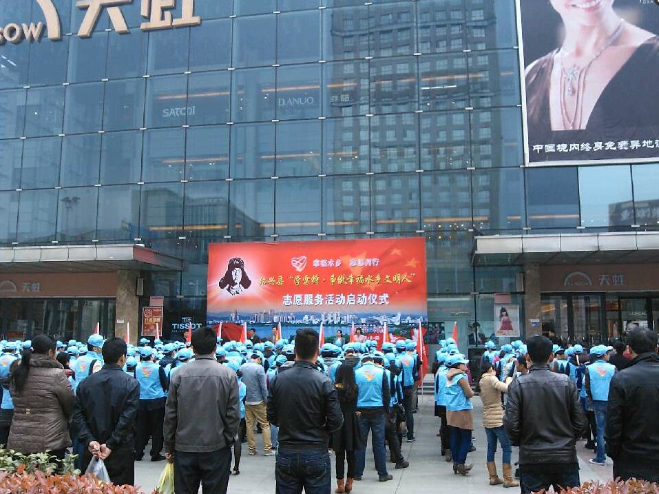 2013年是“向雷鋒同志學習”的50周年,3月29日上午,紹興縣“學雷鋒·爭做幸福水鄉文明人”志愿服務啟動儀式在柯橋天虹百貨門前廣場舉行,正式宣告縣志愿服務總會的成立。水務志愿服務隊代表約20余人參加現場活動,此后水務志愿者現場開展了供排水業務咨詢、維修等活動,吸引了眾多群眾前來參與,獲得廣大居民群眾的一致好評。